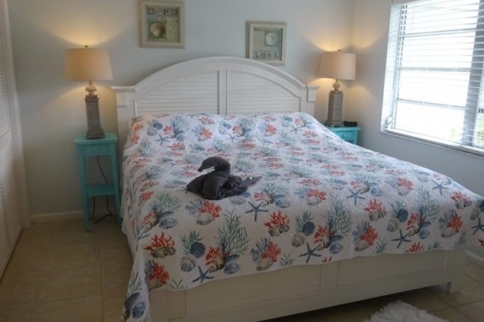 Das Master Bedroom besticht durch seinen privaten Seeblick und verfügt über ein King Size Bed sowie LED Fernseher.